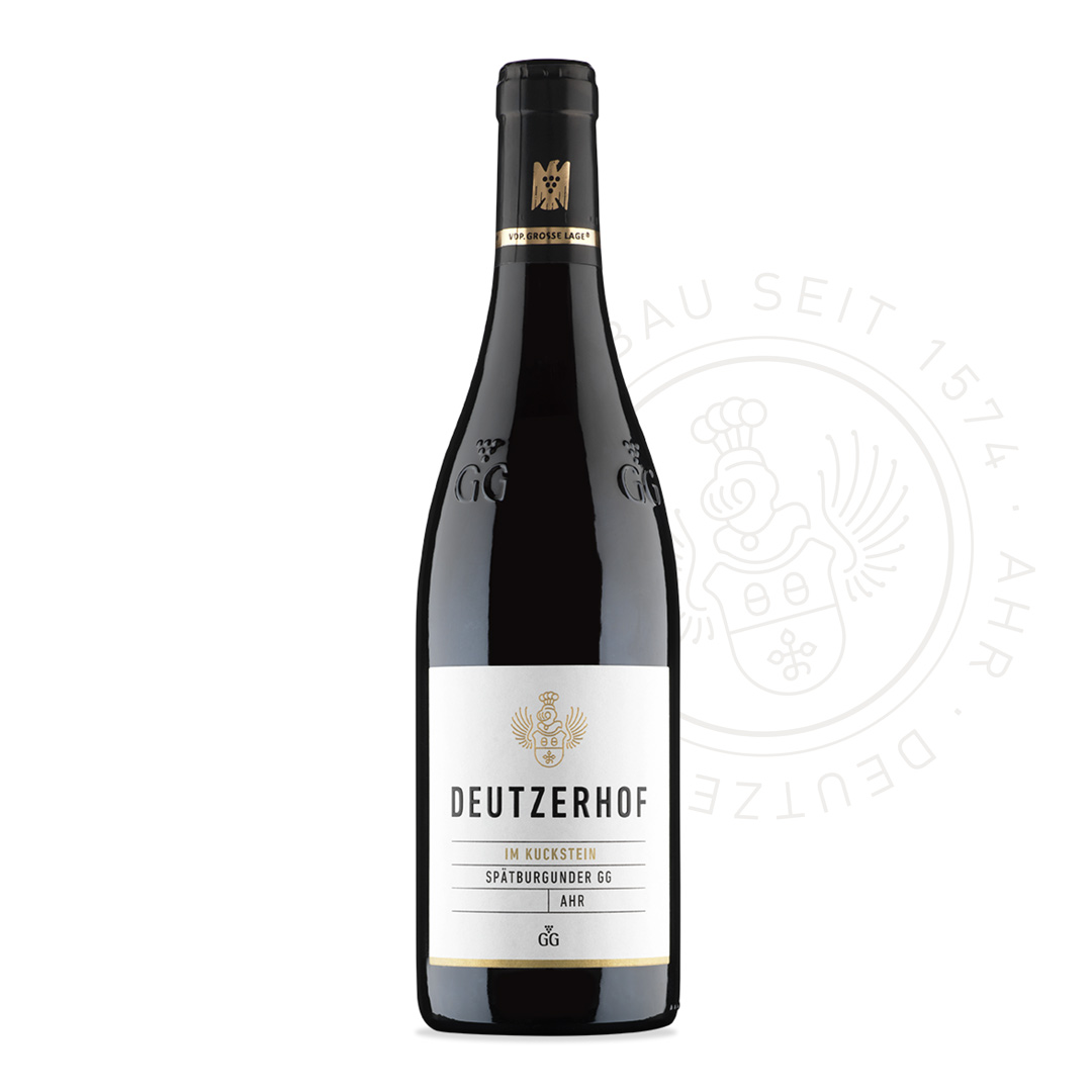 In einer geschützten Talmulde wachsen die kleinbeerigen Rebstöcke dieser Lage. Über dem Schieferboden liegt eine dicke Lehmschicht und dieser einzigartige Boden verleiht dem Wein sein spezielles Terroir. Das Große Gewächs vom Spätburgunder aus dem Im Kuckstein reift 18 Monate in neuen Barriquefässern. Aus dieser Lage entsteht ein rubinroter Spätburgunder. In der Nase zeigen sich kräutrige Noten und am Gaumen ein kraftvoller Geschmack mit einem eleganten Abgang.